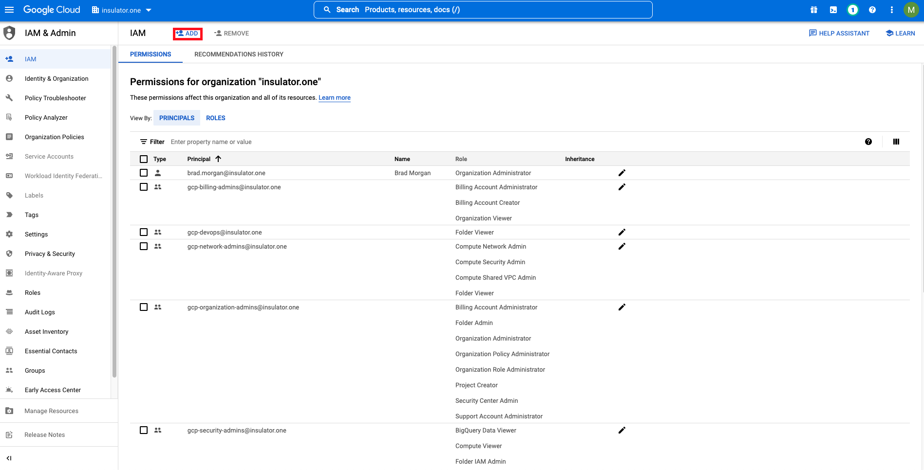Navigate to the IAM tab from the left nav and click ADD button located at the top of the page.